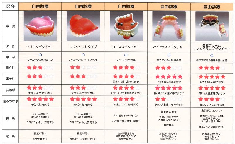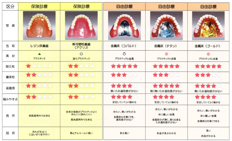保険診療と自由診療入れ歯の違い